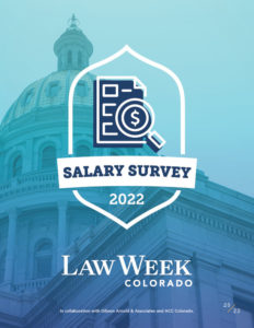 This survey was created to measure salary and job satisfaction for those who are in in-house legal positions. Our confidential survey ran throughout March 2022 and was a collaborative effort by ACC Colorado, Gibson Arnold & Associates and Law Week Colorado. Aggregate data from the survey was compiled in early April 2022 to evaluate salaries, job roles, benefits and industry trends for in-house counsel in Colorado. Our findings are summarized in our written article about the survey but you’ll also find infographics showing the data and trends throughout this special edition flipbook produced by Law Week Colorado.